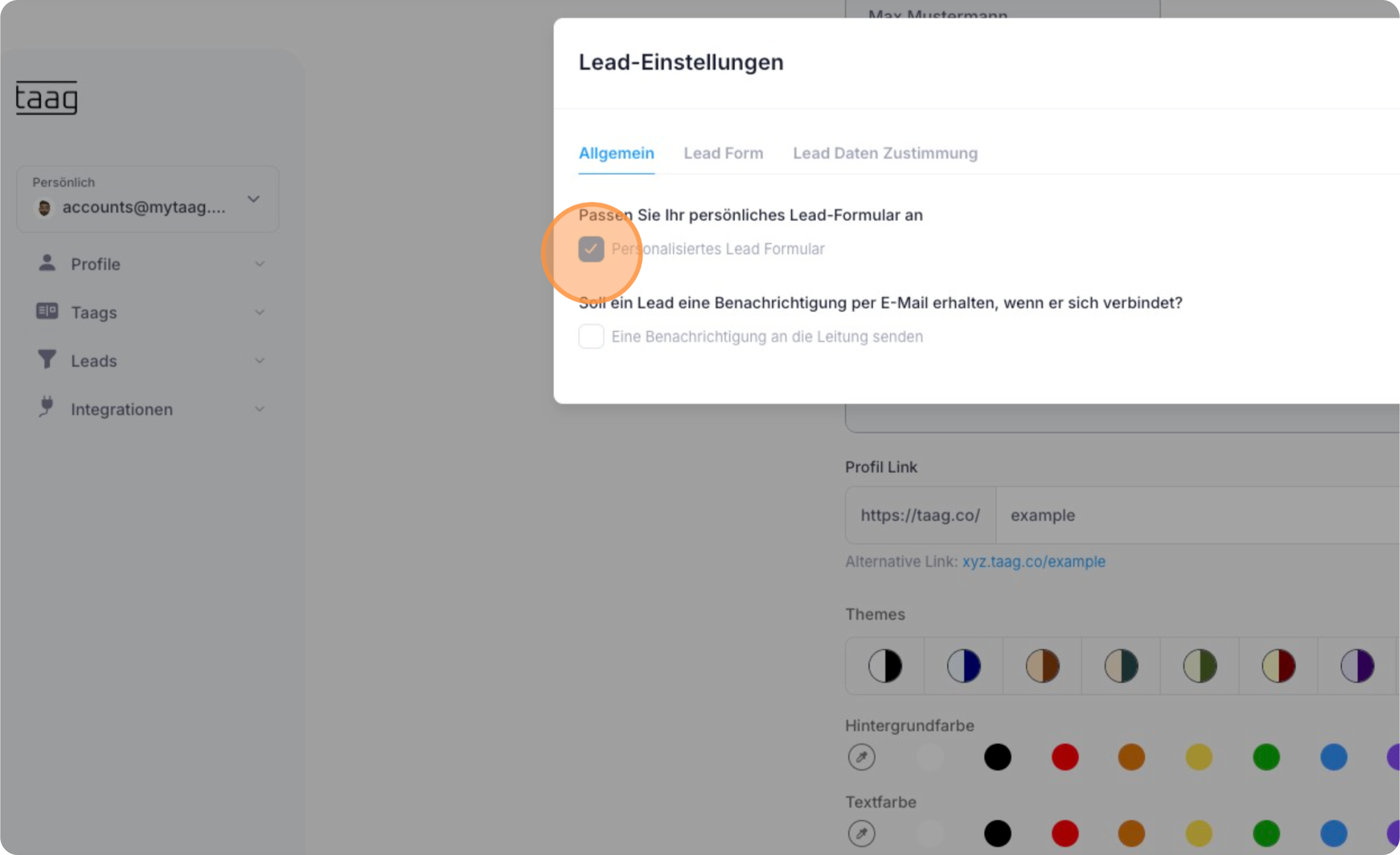 Passe die Lead-Einstellungen zu deinem Profil an.
