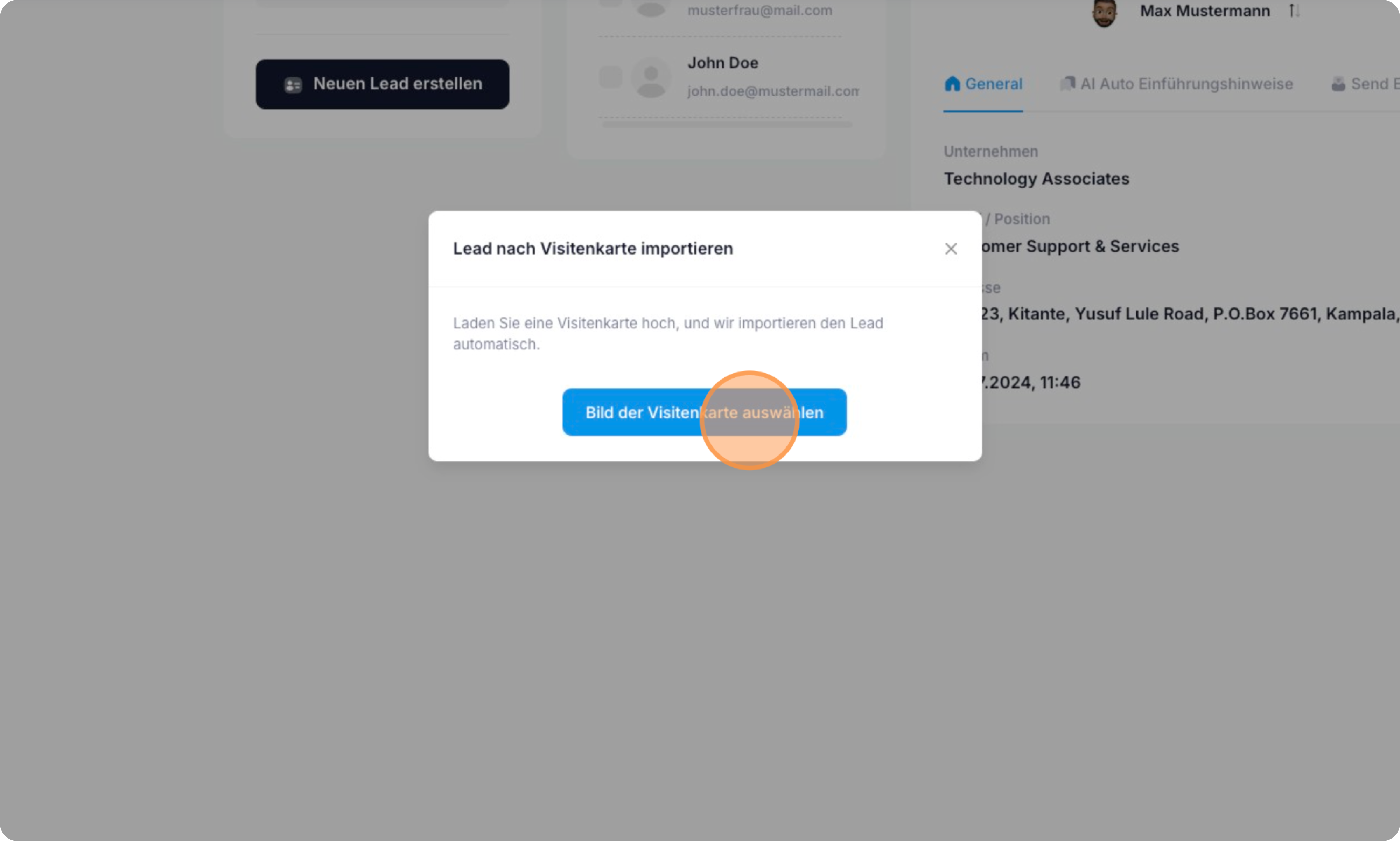 # Lead über Visitenkarte importieren