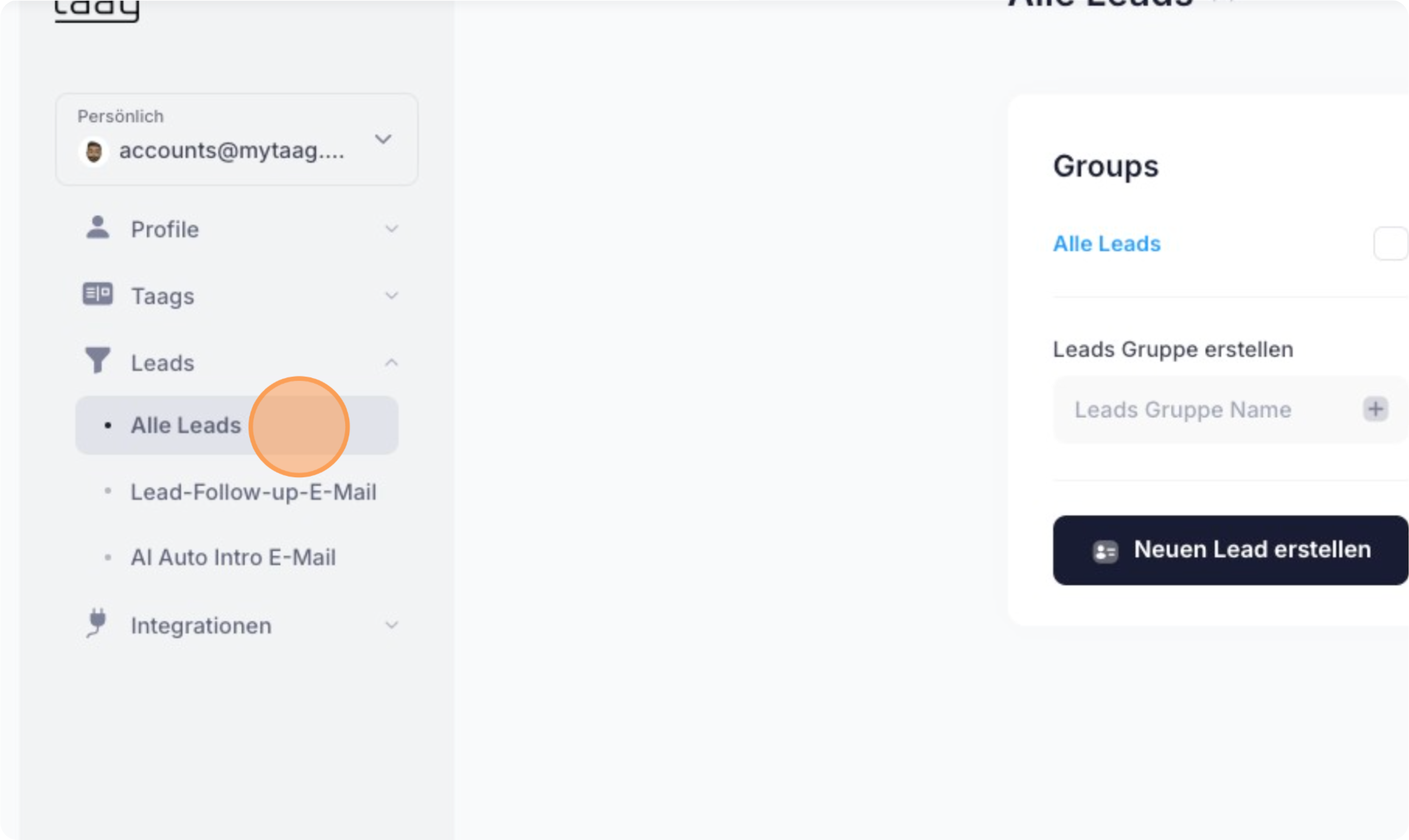 Klicke links in der Navigation auf "Alle Leads".
