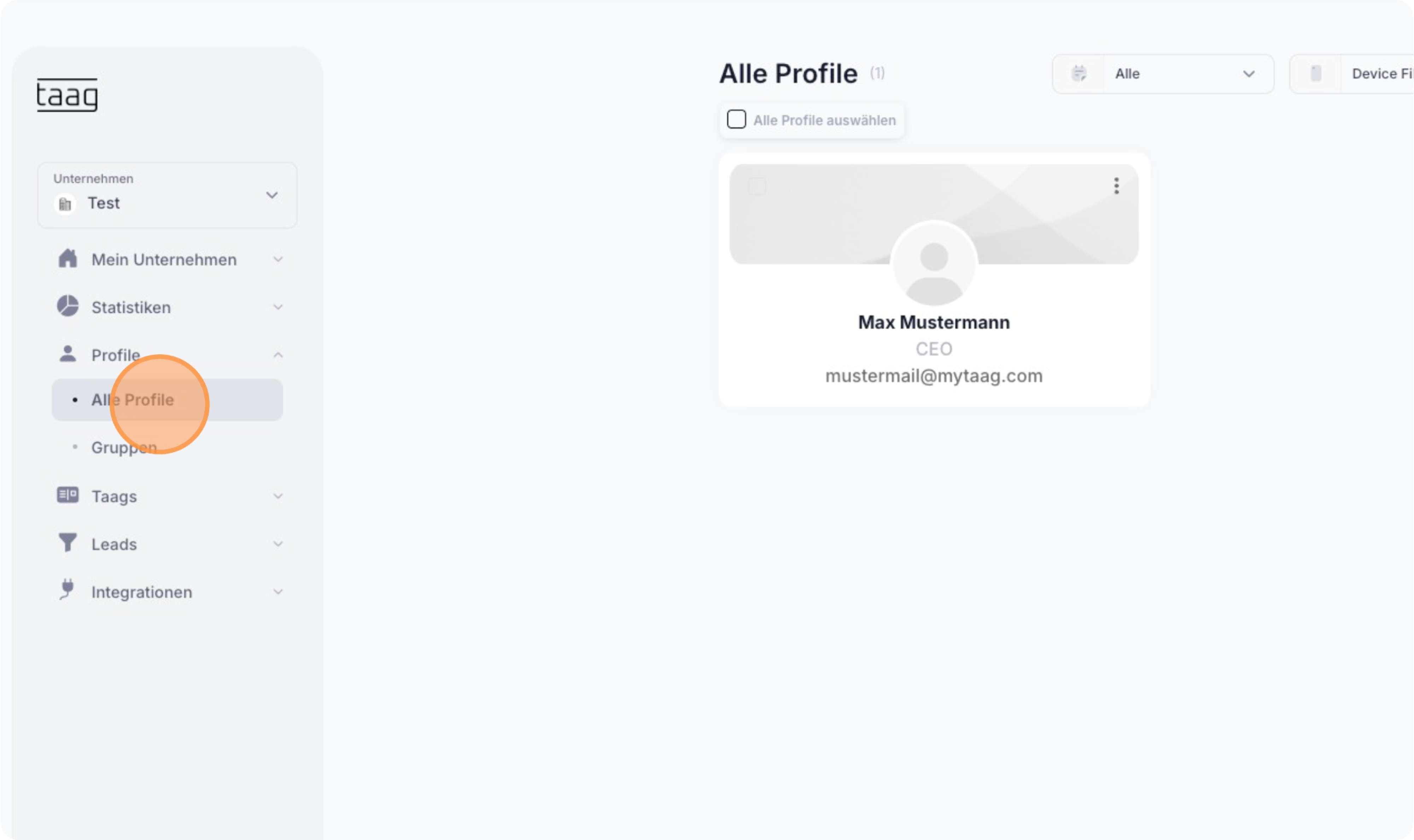 Navigiere links in der Navigationsleiste zu "Alle Profile".