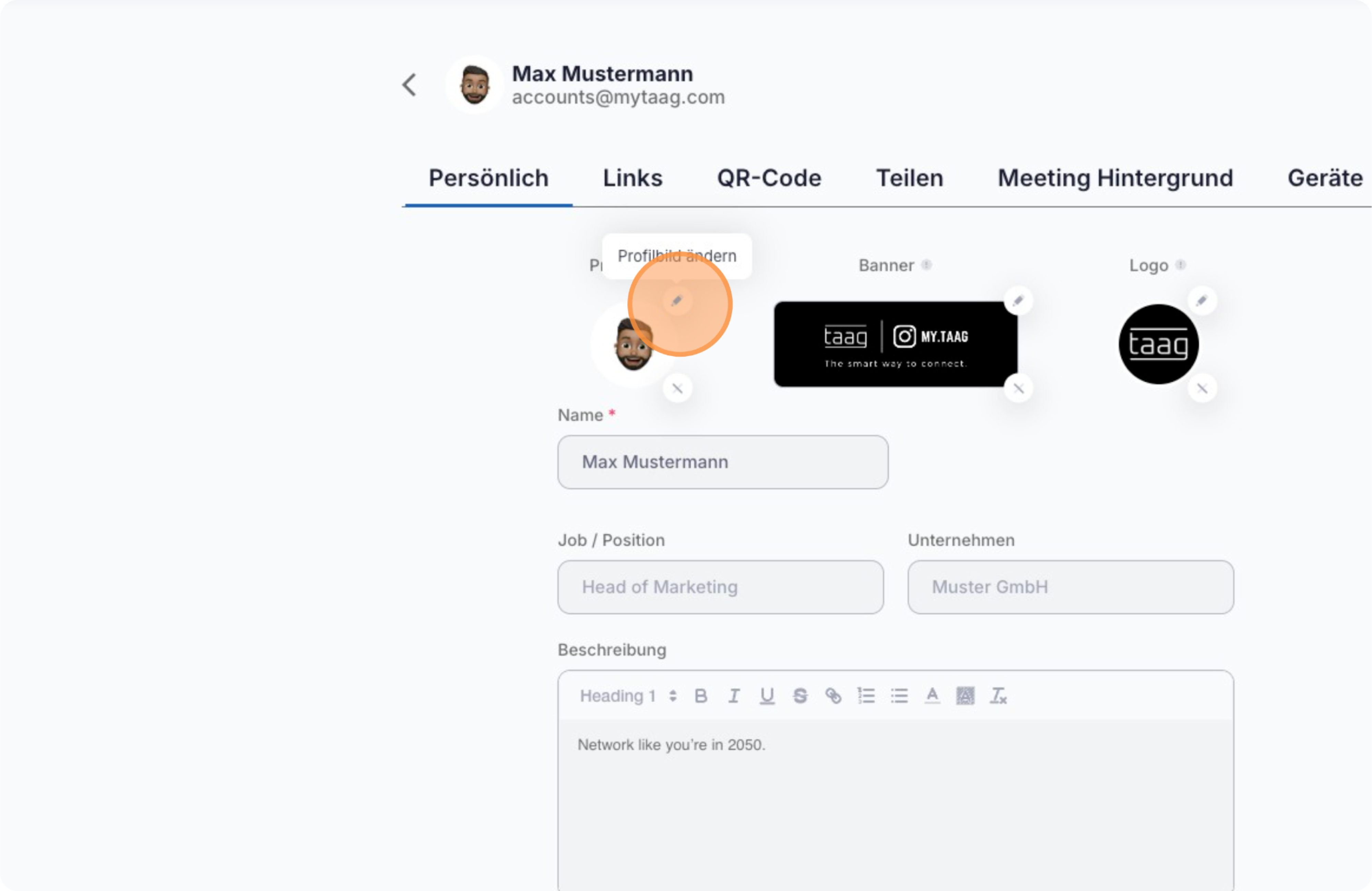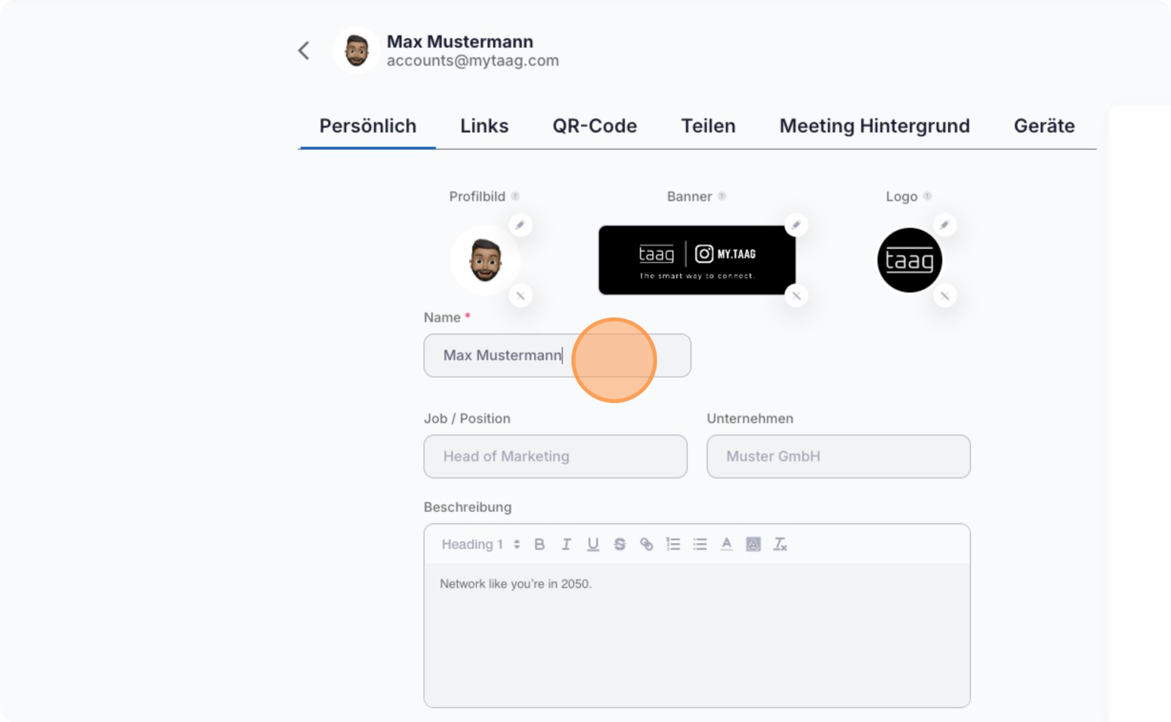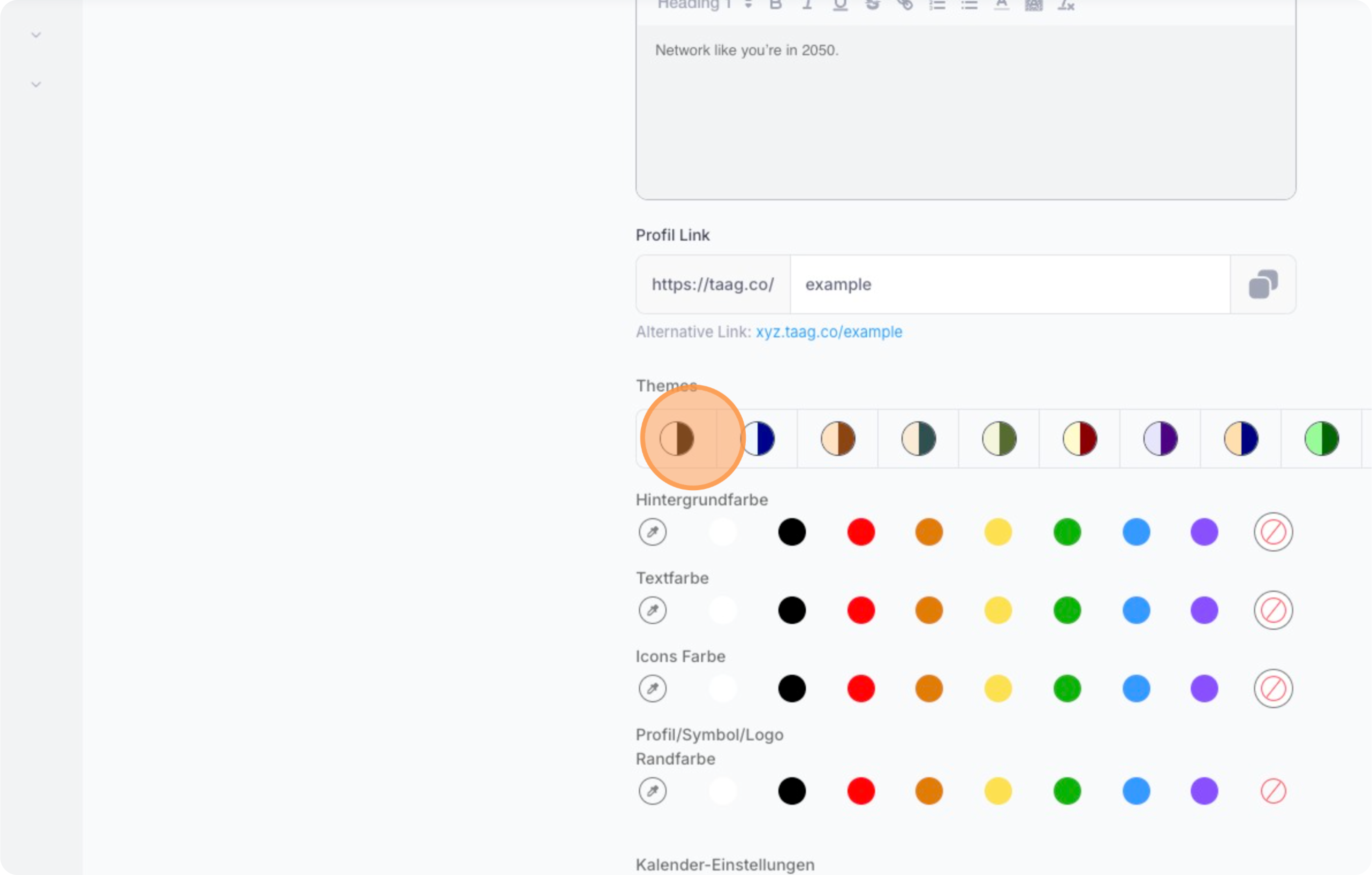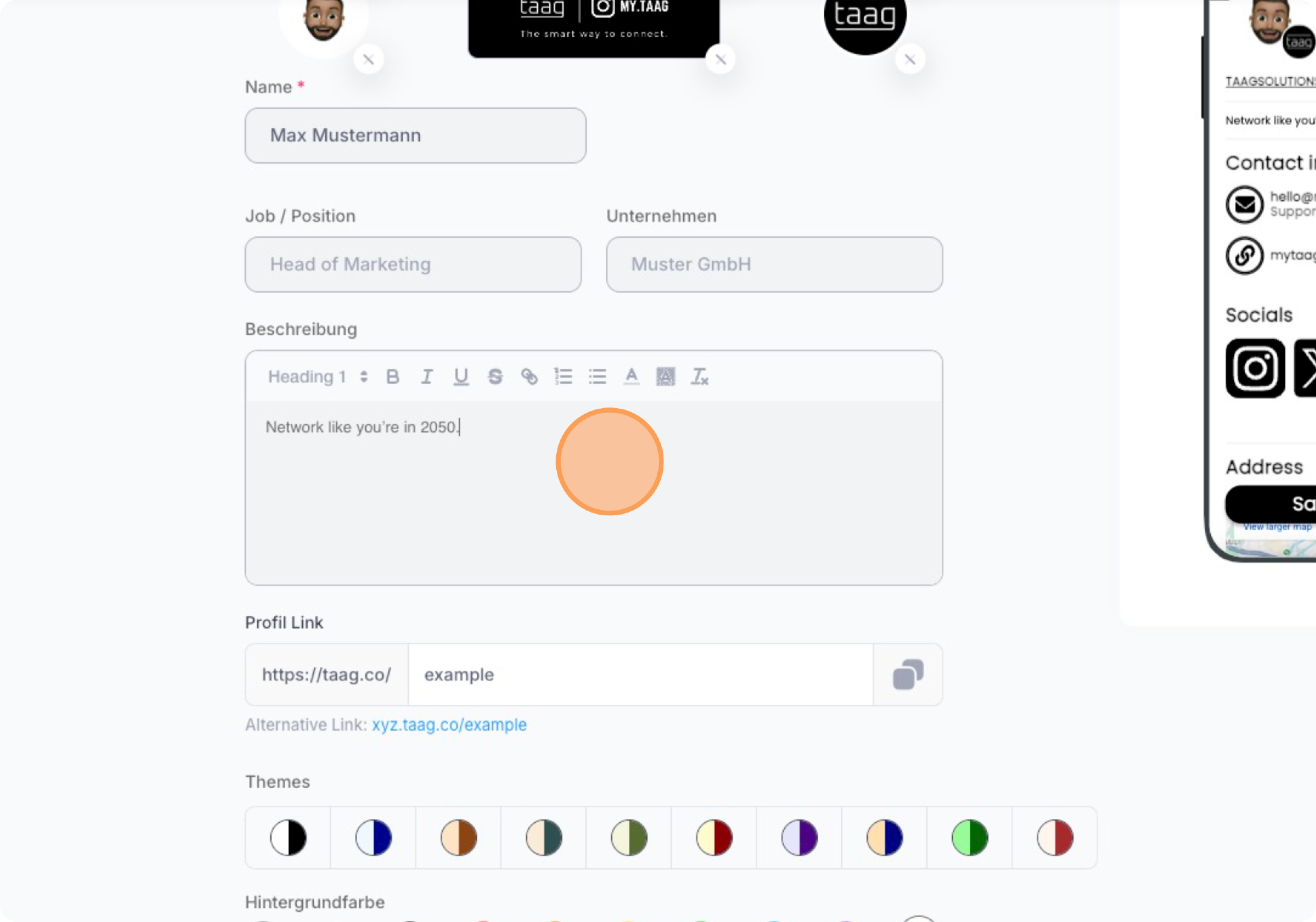 In diesem Feld kannst du den Pfad zu dem Link deines Taag Profils bearbeiten und anpassen.