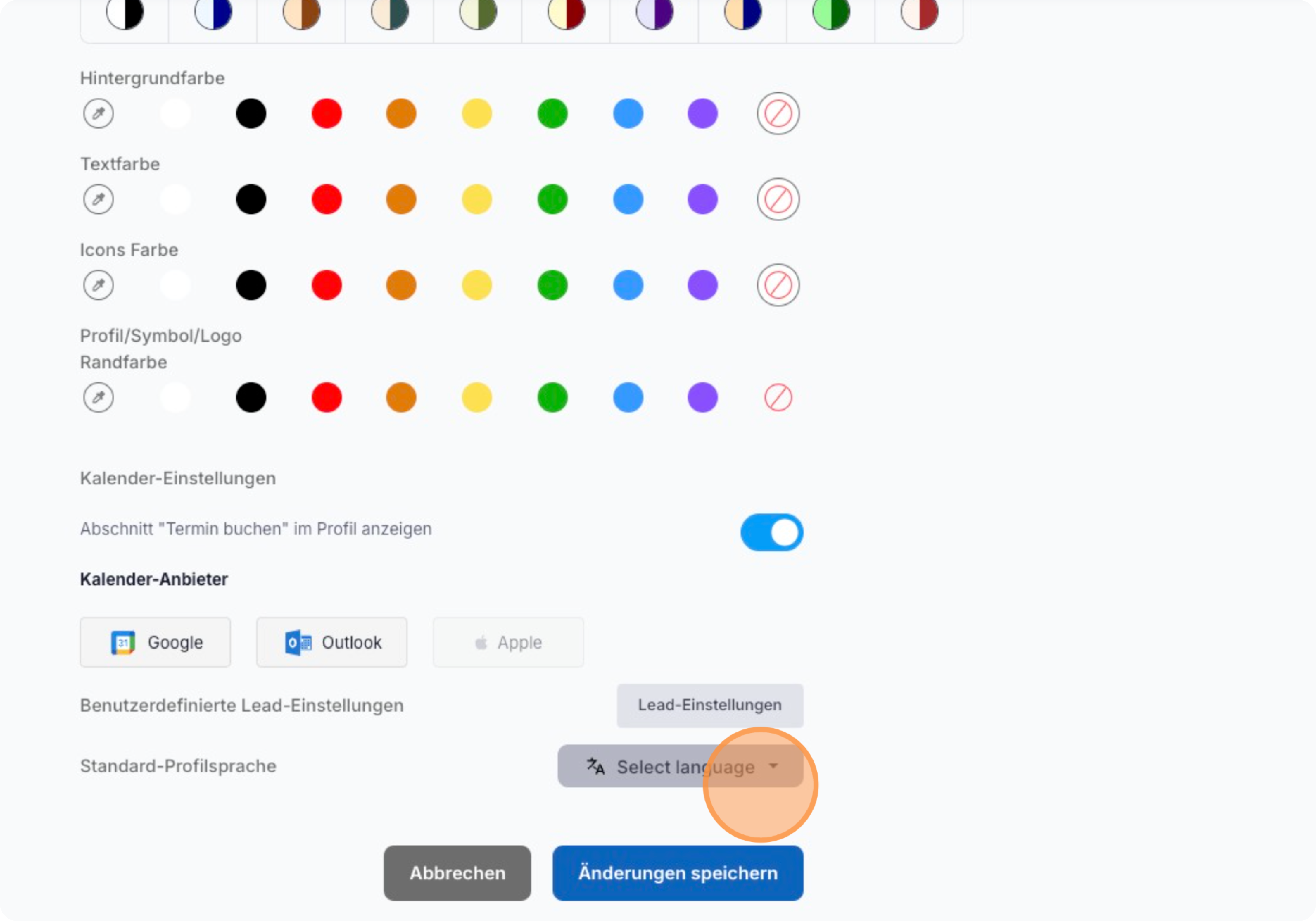 Wähle aus, welche Profilsprache dein Taag Profil haben soll