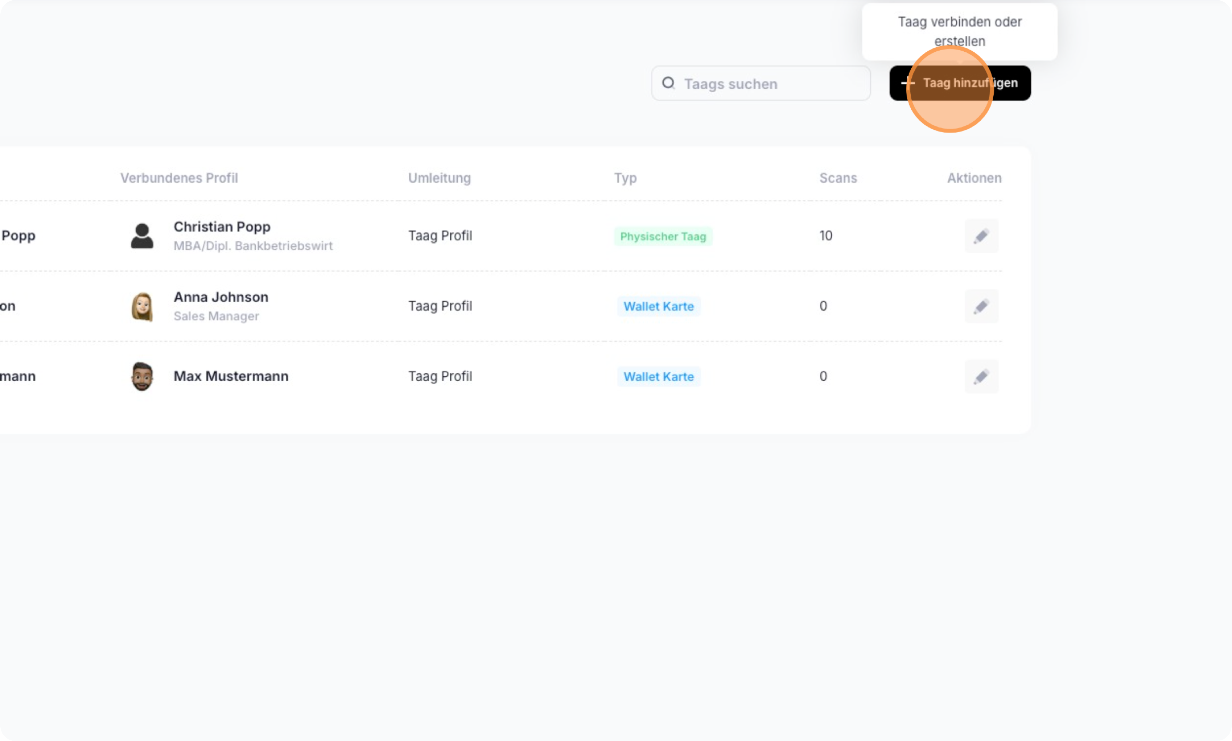 Um deinen physischen Taag mit einem Profil zu verbinden, kannst du das ganz einfach in der Handy App machen!